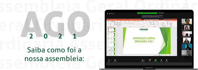 A Assembleia Geral Ordinária, realizada pela Plataforma Zoom, no dia 29 de abril, com o apoio do Sistema OCB/ES, superou as expectativas de todos os presentes, conforme destacou Victor Lima, Analista da OCB/ES (Organização das Cooperativas Brasileiras /ES. “Esta assembleia mostrou a organização da Cretovale. Acompanhamos todas as assembleias das cooperativas filiadas à OCB/ES e posso afirmar que a Cretovale foi uma das mais organizadas, sendo conduzida com clareza e transparência”.
