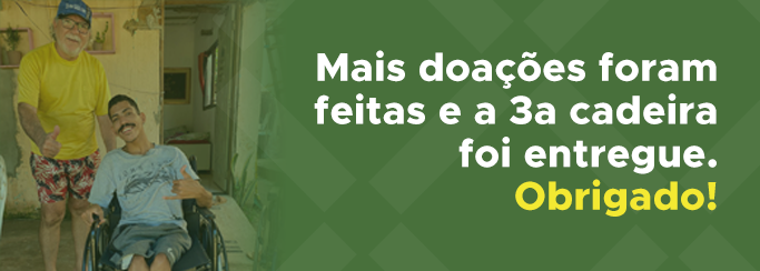 Graças a sua doação de lacres, Thiago de Jesus Almeida passará a ter uma vida mais digna e poderá se locomover melhor até o IFES, segundo ele, onde faz técnico de mecânica, à noite. Ele recebeu a 3ª. cadeira de rodas da Campanha Cretovale em parceria com o Projeto Lacre do Bem. Na foto, Elcio Alves, representante da Associação de Moradores de Pontal de Piraqueaçu, em Aracruz, entrega a cadeira de rodas enviada pelo Lacre do Bem para Thiago e conta como foi o processo de juntar os lacres.“Há algum tempo comecei a juntar lacres. Ai ouvi falar do Projeto Lacre do Bem e comecei a procurar uma instituição séria para entregar os lacres. Visitei a Cretovale e gostei muito do envolvimento deles com o Projeto. Agora, já tem um batalhão de gente juntando lacres para mim, aqui em Aracruz, onde moro”, disse Elcio, feliz em ajudar a melhorar a qualidade de vida do jovem Thiago.