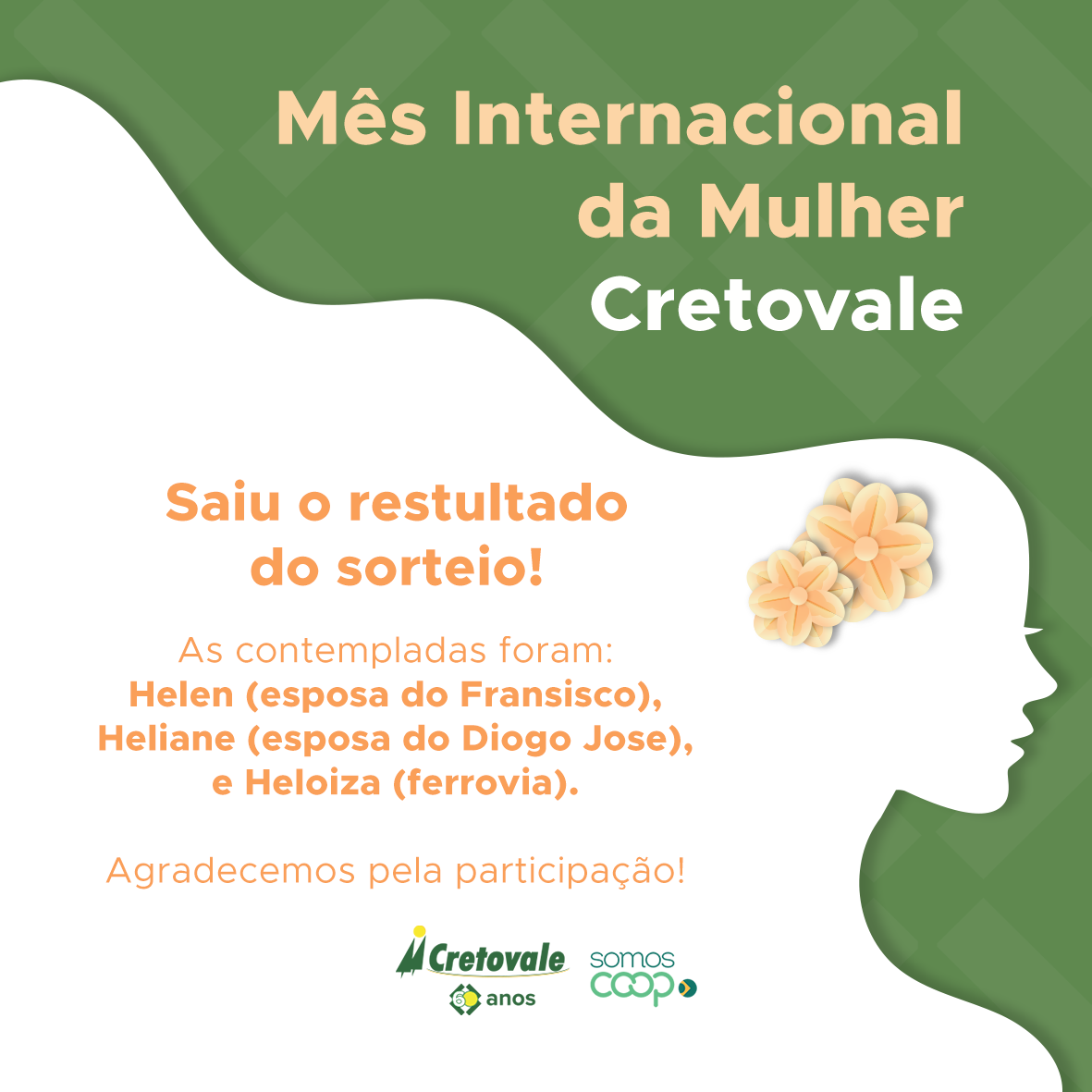 Saiu o resultado dos sorteios do mês da Mulher Cretovale, com Pacote SPA Presente com massagem relaxante