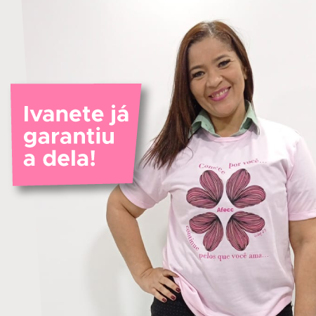 Ivanete Rodrigues com sua camisa do Outubro Rosa